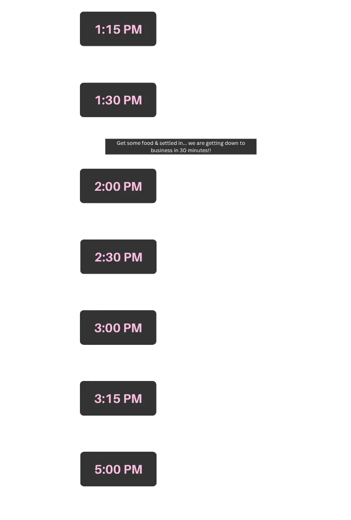 Horderves + Beverages will be provided by our lovely sponsors, see timeline graphic below!